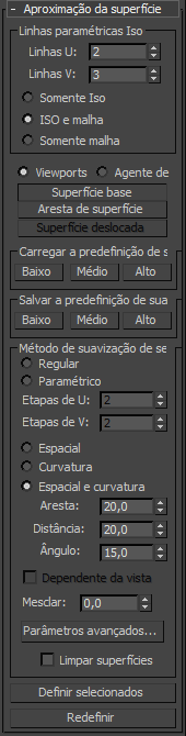 Os controles em Surface Approximation são os mesmos que os controles Aproximação da superfície NURBS de aproximação de superfície para os objetos de superfície NURBS, com dois botões adicionais: definir Selected e Reset.