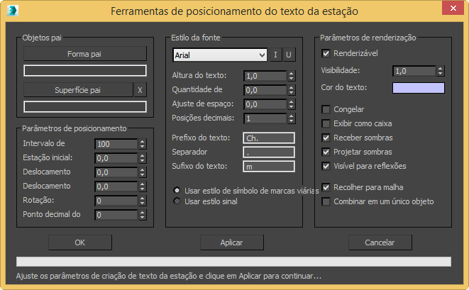 - Define a altura do texto da estação nas unidades do sistema 3ds Max.