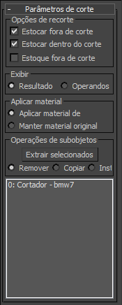 - Quando ativado, os objetos selecionados são designados como cortadores, usados para subdividir objetos de estoque.