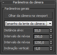 - Válido somente para as câmeras criadas no Civil View, este controle especifica a distância até o ponto ao qual a câmera está apontada. Dependendo da geometria da forma principal da câmara, esse valor pode afetar a orientação e a rotação da câmara.