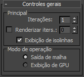 - Desative as faces com arestas e, em seguida, na implementação de Controles Gerais do modificador OpenSubdiv, clique na seta para cima do girador de Iterações para aumentar o valor para 2.