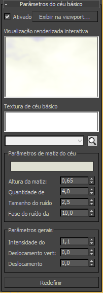 Por padrão, a textura do céu é automaticamente carregada em cada nova cena. Se você for um usuário experiente 3ds Max, também é possível texturas de céu própria, neste caso, todos os controles nesta implementação serão desativadas.