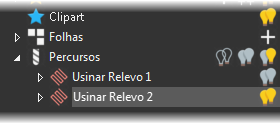 O ArtCAM calcula o percurso e adiciona um item Usinar Relevo 2 sob o item Percursos na Árvore de Projeto:
