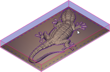 Esta seção descreve como criar o segundo percurso de usinagem de relevo, que é aplicado somente ao relevo em si, conforme definido pela fronteira de vetor. Utilize esse percurso para o acabamento de superfície do relevo utilizando uma ferramenta esférica de 1.5 mm.