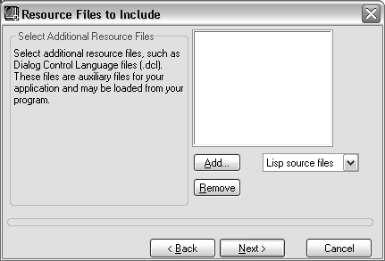 Multiple AutoLISP source and DCL files can be compiled into a single application file.