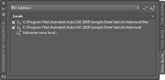 É possível adicionar e remover locais de pastas para controlar quais arquivos de desenho estão disponíveis para o conjunto atual de folhas.