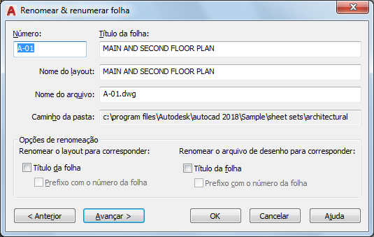 Quando selecionada, altera o nome do arquivo de desenho para corresponder ao título da folha.