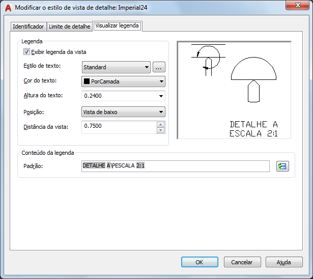 Especifica o estilo de texto a ser utilizado na legenda de vista de detalhe.