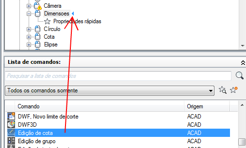 - No painel Lista de comandos, arraste o comando que deseja adicionar na ação de clique duplo no painel Personalizações em <nome do arquivo>.