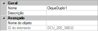 No painel Propriedades, as propriedades da ação de clique duplo selecionada são exibidas.