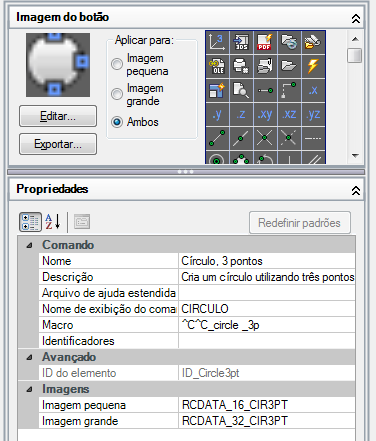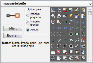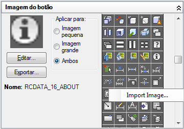 Selecione uma imagem na lista. O nome da imagem será atribuído à propriedade Imagem Pequena, à propriedade Imagem grande ou a ambas as propriedades do comando selecionado.