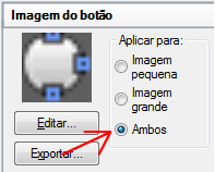 No painel Imagem de botão, em Aplicar para, selecione uma das três opções de atribuição de imagem; Imagem pequena, Imagem grande ou Ambas.