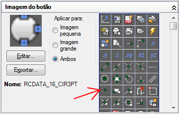 No painel Imagem de botão, em Aplicar para, selecione uma das três opções de atribuição de imagem; Imagem pequena, Imagem grande ou Ambas. A seguir selecione a imagem importada da lista de imagens.