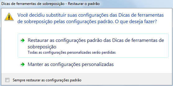 Se um objeto estiver selecionado, as propriedades desse tipo de objeto serão exibidas em uma dica de ferramenta de sobreposição quando o cursor passar sobre um objeto do mesmo tipo. Limpe a marca de seleção ao lado de um tipo de objeto para remover o suporte para esse tipo de objeto das dicas de ferramentas de sobreposição.