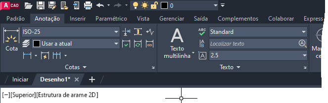 Neste exercício, você vai reposicionar a guia Anotação e o painel Cotas.