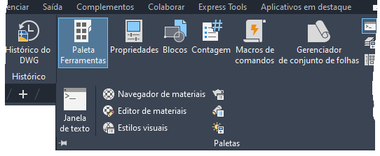 A janela Paletas de ferramentas agora deve ser exibida na interface do usuário do AutoCAD.