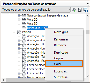 No nó Guias, clique com o botão direito do mouse em Minha guia HYT e escolha Colar.