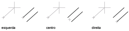 A linha de arraste é uma linha elástica que determina o posicionamento de uma linha dupla. Você pode controlar se a linha dupla é centralizada na linha de arraste ou deslocada para a direita ou para a esquerda.