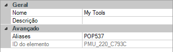 4. No painel Propriedades, na seção exibição, faça a alteração desejada na propriedade Nome (não nas propriedades Nome do comando ou Nome de exibição do comando).