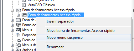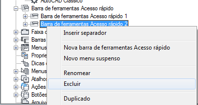 Uma nova barra de ferramentas de acesso rápido (denominada Barra de ferramentas de acesso rápido 1) é colocada na parte inferior do nó Barra de ferramentas de acesso rápido.