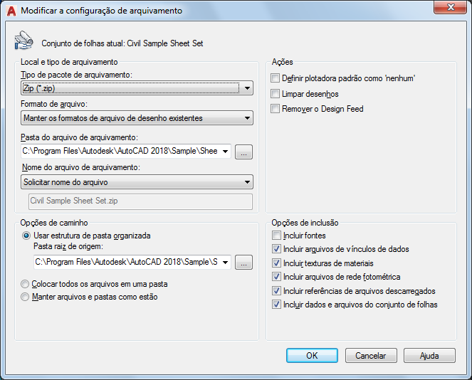 Inclui quaisquer arquivos de fonte (TXT e SHX) associados ao pacote de arquivos.