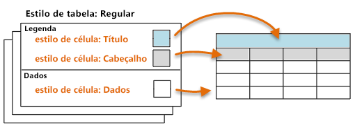 A aparência de uma tabela é controlada pelo estilo da tabela, que armazena uma coleção de estilos de célula das legendas e dos dados. Esses estilos de célula são atribuídos a cada célula na tabela.