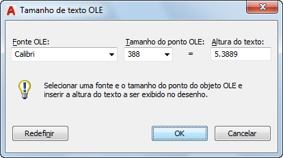 O objeto OLE é redimensionado automaticamente para acomodar o tamanho do texto.