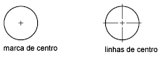 Os tamanhos-padrão dos componentes de marca central podem ser definidos a partir do Gerenciador de estilos de cota, guia Símbolos e Setas, Marca de centro (variável de sistema DIMCEN).