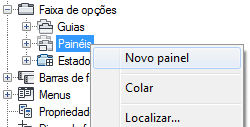 Cuidado: Não é possível desfazer a remoção de um painel da faixa de opções. Se você remover o painel errado da faixa de opções, clique em Cancelar para fechar o editor Personalizar interface do usuário (CUI) e não salvar as alterações feitas. Com isso, todas as outras alterações serão desfeitas.