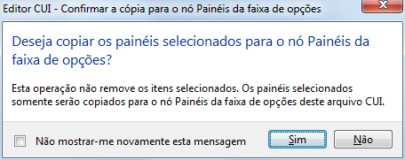 6. Na caixa de diálogo Confirmar a cópia para nós dos painéis da faixa de opções do editor CUI, clique em Sim.