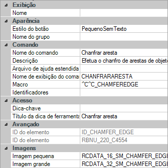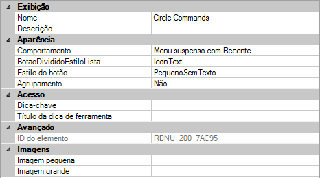 6. No painel Propriedades, altere as propriedades do comando adicionado.