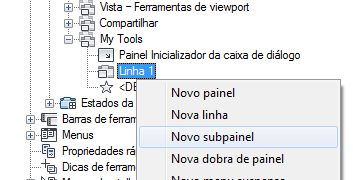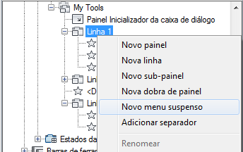 5. Clique com o botão direito na linha e selecione Novo subpainel ou Novo painel dobrado.