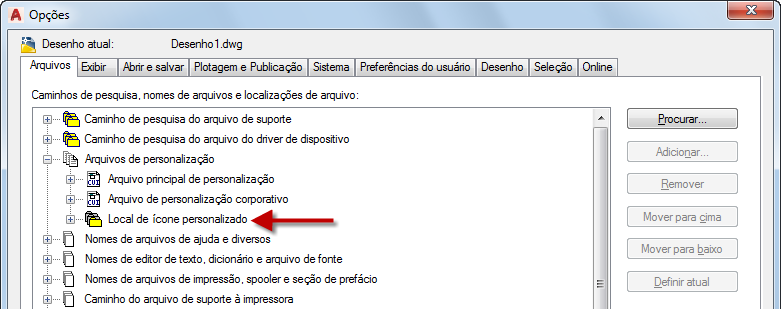 <unidade>:\Users\<perfil do usuário>\AppData\Autodesk\<versão do produto>\<número da versão>\<idioma>\Arquivos personalizados da versão anterior