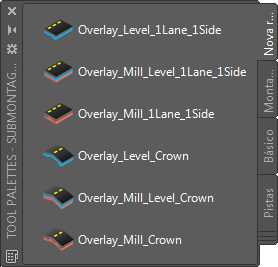 When creating a rehab corridor, you specify parameters for cross slope correction, mill, level, and overlay, and AutoCAD Civil 3D builds the assembly and the corridor to meet your specified criteria. For more information, see About Rehab Corridor Modeling.
