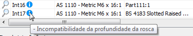 Informações detalhadas sobre os quatro tipos de interferências de roscas sem correspondência. Passe o mouse sobre a dica de ferramenta de informações para exibir o tipo de interferência.