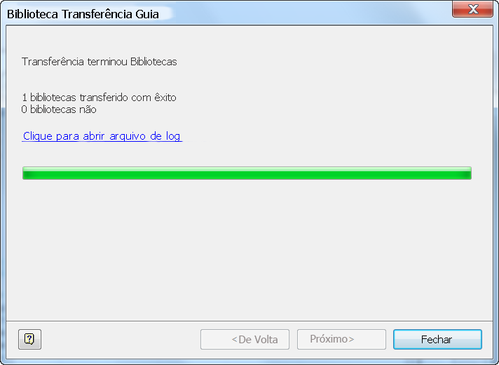 - Clique em [Avançar] para transferir as bibliotecas. Consulte Figura 5. A seguir, clique em Fechar para concluir.