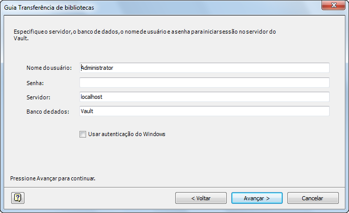 - Clique no botão [Avançar] para efetuar login no servidor Vault. Consulte Figure 3.