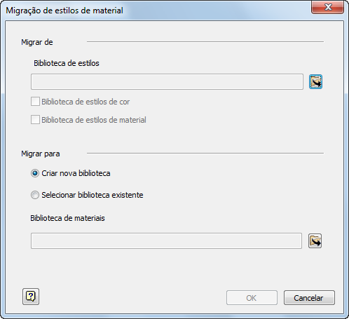 Inventor 2013 adicionou novas bibliotecas de Material e Aparência que substituem material e estilos de cor. Novas bibliotecas e conteúdos são fornecidos. No entanto, se você preferir utilizar uma biblioteca existente de uma versão anterior, esta pode ser migrada seguindo as etapas descritas abaixo.