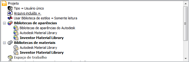 Nota: Uma biblioteca pode conter ambos os materiais e as aparências ou pode conter apenas aparência. Se o material e estilos de cor foram migrados para uma única biblioteca, adicione a biblioteca para ambas as bibliotecas de Aparência e Material adicione a biblioteca de aparência para as bibliotecas e as bibliotecas de materiais para seu projeto. Se você migrar os estilos de cor como uma biblioteca independente adicionar somente ao item Biblioteca de aparência.
