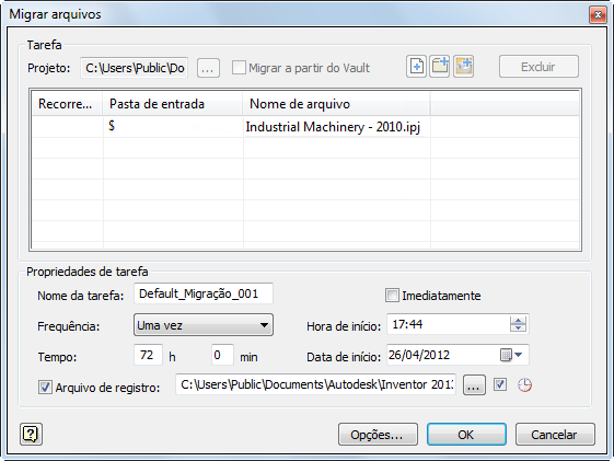 É possível fazer check-out manual de arquivos antigos e salvá-los e, depois, fazer check-in deles no Vault para migrá-los. ou você pode automaticamente migrá-los usando o Agendador de tarefas. Estas seções descrevem como migrar os arquivos para a nova versão do Inventor no Vault usando o Agendador de tarefas.