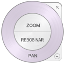 Nota: Nos arquivos IDW somente o círculo de navegação 2D está disponível. Ele é dividido nos setores Pan, Zoom e Rebobinar. Nas vistas de DWG, ViewCube e todas os círculos 3D estão disponíveis na vista de modelo e somente a roda 2D está disponível na vista de layout.