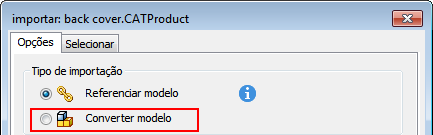 A operação de Modelo de conversão não mantém a associatividade com o arquivo original. Como resultado, alterações efetuadas ao arquivo original após a importação não afetam à peça ou montagem importada. Igualmente, alterações efetuadas à peça ou montagem importada não afetam o arquivo original.