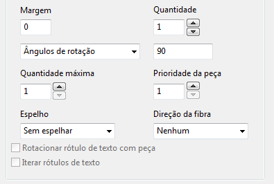 Rotacionar rótulo de texto com peça — Quando as peças são duplicadas, o PowerShape rotaciona as peças para caber na folha. Selecione essa opção para também rotacionar os rótulos de texto presentes nas peças rotacionadas.