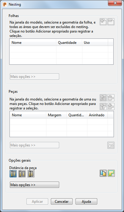 Mais opções — Se uma folha estiver selecionada, clique nesse botão para exibir opções adicionais de nesting para essa folha.