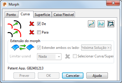 As opções Avançadas permitem selecionar separadamente as duas curvas a serem utilizadas no morph. Esta opção também permite utilizar uma curva ou uma superfície para limitar a região afetada pelo morph.
