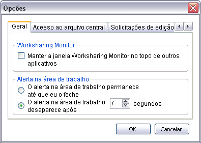 - Se a janela do Worksharing Monitor sempre fica sobre as janelas de outros aplicativos. Esta opção assegura a visualização de novas informações que se tornam disponíveis.