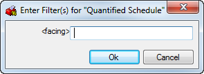 É possível inserir a regra <NOME> que solicita o valor na hora da impressão. Este exemplo mostra que digitar o nome de um revestimento aplicado aos itens filtra os outros dados que não coincidem com o critério.