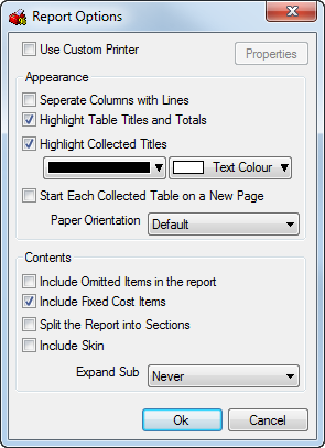 Include Fixed Cost Items: especifica se os custos fixos são exibidos no relatório.