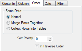 - Merge Rows Together as linhas de dados são combinadas em uma única linha se os dados desta coluna e de todas as outras colunas com esta opção ativada forem consecutivamente os mesmos. Os dados que não forem os mesmos são combinados ou totalizados.