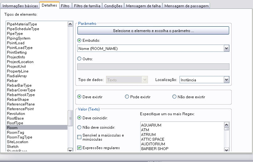A guia Detalhes controla o que está sendo verificado na verificação individual no Model Review